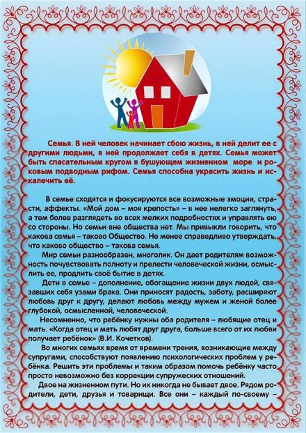 Консультация для родителей «Роль семьи в воспитании ребенка».