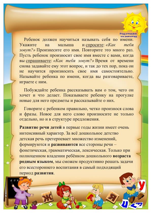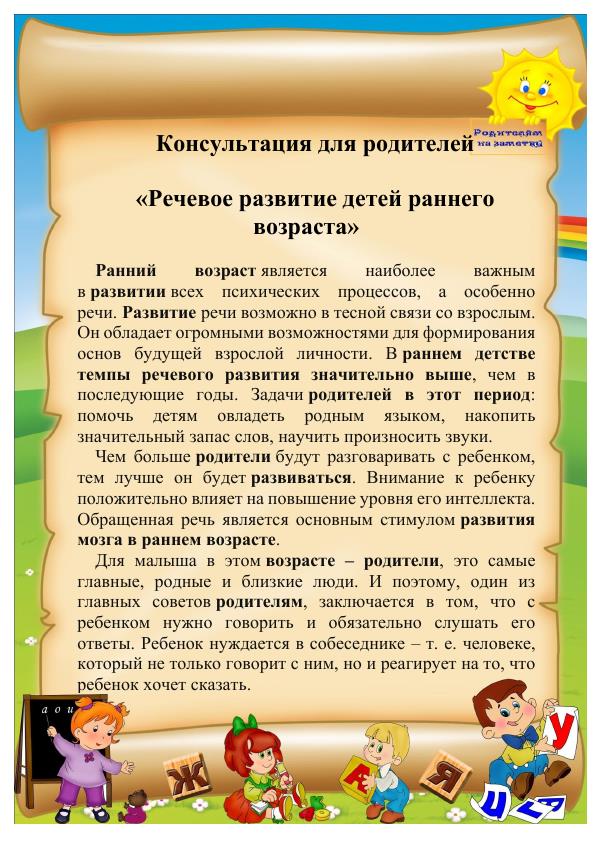 Консультация для родителей «Речевое развитие детей раннего возраста»