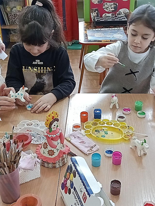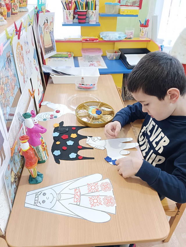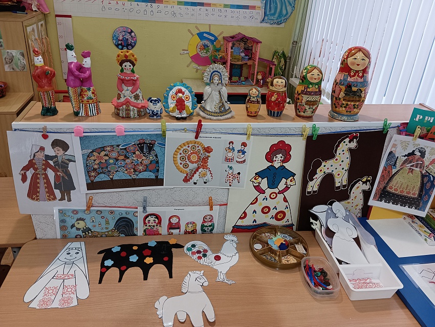 В разновозрастной группе детского сада проходит творческий проект "Дымковская игрушка".